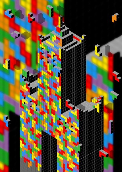 作者以魔術方塊堆積方式重新型塑高雄85大樓,讓生活在此的人彷彿遊戲高雄魔幻城。