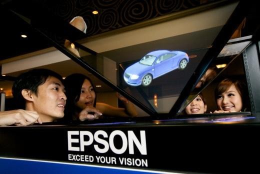 Epson將於此次台北應用展獨家曝光最新引進的「浮空投影技術」,讓人大開眼界!「浮空投影方案」是一種全新展示方式,透過浮空投影,可創造出特別的商品、藝術品展示方式,在一般空間中動態呈現。觀眾無須佩戴特別眼鏡,即可看見浮空投影模型。其為一種全新的影像展示技術,基於「實景造型」和「懸浮」的光學成像結合,獲得「懸浮」與實景造型結合及相互作用的逼真效果,帶給觀賞者視覺上深刻的衝擊印象。浮空投影多數被應用於博物館、科技館、企業展廳等高科技展演廳。