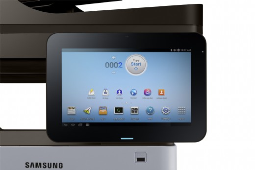 三星以開發能完美融入資訊與智慧辦公環境的印表機解決方案為重點目標,全新 Android 系統的多功能事務機將搭載三星 Smart UX Center,無須連接電腦即可獨立操作,具應用程式擴充性並且提供簡易操作的介面設計。