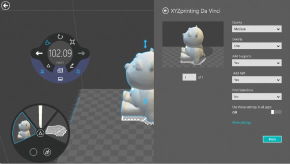 透過3D Builder,使用者免去安裝及設定的步驟,可直接進行列印編輯與調整,最後僅需按下”列印”,3D檔案將傳送至da Vinci 系列3D列印機並開始進行列印