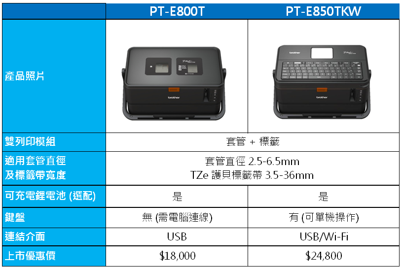 Brother 在台推出“套管/標籤”兩用線號印字機 PT-E800T與PT-E850TKW