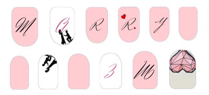 戀愛密語藏指間,讓指甲說出不能說的秘密: 在指間藏下驚喜, I MISS YOU 、Marry Me 浪漫告白,適合喜歡創造驚喜的話題系女孩。