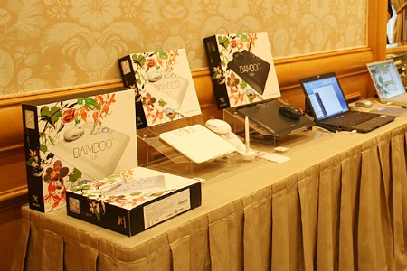 會中也介紹了10月才在台上市的Bamboo Fun數位板,Bamboo Fun分成小型(4x6)與中型(6x9)兩種尺寸。不僅外形成現時尚流線造型,在顏色方面也有多種選擇;小型繪圖板有科技銀與時尚白,中型板則有神秘黑與時尚白兩種選擇。在產品介紹的同時,也請插畫家BO2以Bamboo Fun在相當短的時間完成一幅有趣的插圖,獲得在場來賓熱烈掌聲。