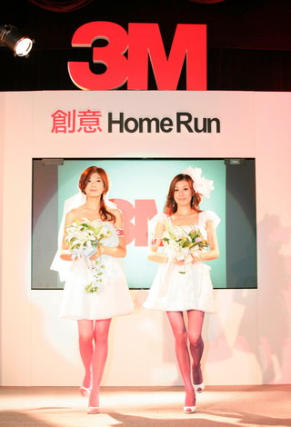 接著上陣的是模特兒情境走秀,趙台生指出,為了展現用途廣泛的3M產品,3M北台灣創意日特地結合多種不同的產品於情境秀中展出,尤其是ScotchliteTM 反光材質的多元應用於運動服裝、特定制服、賽車服與鞋子,希望能夠展示3M用途廣泛的產品特色,而其中以ThinsulateTM保溫材質製作而成的改良式婚紗最令人眼睛為之一亮。此外,透過舞台秀示範ScotchgardTM撥水及防油汙系列,更讓人為產品的效果驚奇不已。最後,以特大鐵鎚敲向經過防爆隔熱膜特殊處理的玻璃,以及有害氣體偵測器的展出,不但震撼人心,也顯示出3M研發系列產品的用心及安全對於居家與工業上的重要性。