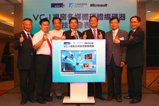 國內多媒體產業藍海的新方向!工研院今(4)日與微軟在新竹攜手發表Windows Media Video 9(WMV9, 或稱VC-1)「硬體編解碼器」,為消費性電子產品帶來革命性變化!不僅使得影片轉檔速度提升20倍,更具備50~100倍的高倍數壓縮功能,在工研院與微軟的Windows多媒體技術中心合作之下,成功將VC-1軟體設計成可作即時編解碼運算的硬體平台,未來在廠商將此單晶片化後,可內嵌在隨身數位影音產品中,滿足即時拍錄與即時編碼的需求,隨時隨地都能享受不間斷的高品質多媒體影音內容,此為台灣晶片與系統產業在高畫質影音多媒體編解碼領域中的一個自主關鍵技術,可大幅提昇台灣影音多媒體產業發展之國際競爭力。