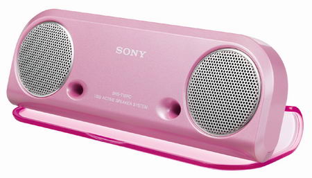 另一款新品是流線輕巧的【SRS-T10PC】可攜式喇叭,一體成型、不佔空間,擁有搭配性極高的粉紅、黑、白三款個性化色彩。【SRS-T10PC】運用USB接頭即可與電腦連接,隨插即用,並且不需插電,直接運用電腦的電力,使用上相當便利,讓豐富的音樂享受輕鬆隨身帶著走。
