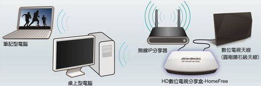 圓剛科技瞄準數位電視娛樂市場商機,領先業界發表最新產品「區域網路電視盒」─圓剛HD數位電視分享盒-HomeFree!圓剛HD數位電視分享盒將電視卡/棒之訊號傳輸技術結合IP應用架構,透過區域網路串流傳輸即時數位電視訊號,使用者只要將電腦連上區域網路,就能接收到畫質零失真、不延遲中斷的即時數位電視訊號;搭配無線IP分享器,更能在無線區域網路內,不受空間限制地在任何房間享受數位電視!