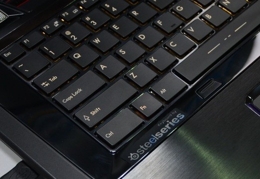 另外SteelSeries在一般鍵盤上的特色,即摒除Windows鍵以避免在遊戲中誤觸的理念,也帶到MSI的遊戲筆電鍵盤設計中。使用者可以發現,在鍵盤左下角的鍵位配置中,僅保留了誤觸亦無反應的Fn鍵,而Windows鍵就與SteelSeries的7G、6Gv2一樣,早已消失於標準的鍵位配置中。除此之外,整體鍵盤中央些微凸起的人體工學設計,以及賦予按鍵較佳回饋感的設計,都是SteelSeries想要讓玩家能夠更易於接受使用筆電來進行遊戲的設想之處。