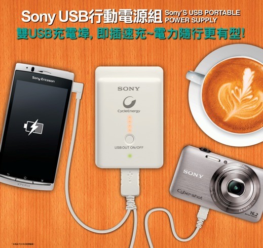 希望隨身3C配備隨時充滿電力、又要省卻攜帶各種充電器的困擾,其實很簡單!台灣索尼股份有限公司即將推出時尚輕巧的Sony USB行動電源組【CP-A2L】,內建4000mAh超大容量可充電式鋰電池,配備雙USB供電插口,可同時進行兩種裝置的充電,適用於各品牌智慧型手機、隨身音樂播放器、數位相機、數位攝影機等高耗電量產品,提供方便且快速的充電,不需攜帶個別的充電器或手忙腳亂找插座,就能保持3C配備電力充沛,輕鬆延長隨身通訊、音樂、與拍照的樂趣。