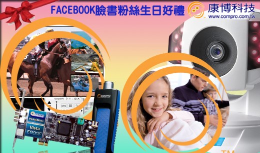 今夏超好康,康博科技於6/1~6/8舉辦粉絲生日好禮大方送活動,號召FACEBOOK的粉絲一同慶生。六月份壽星只要擁有康博任一款產品,在活動期間內至康博科技官方中文Facebook 「Compro Taiwan 康博科技」按讚後留下簡單資料,即可獲得當月粉絲生日禮唷~