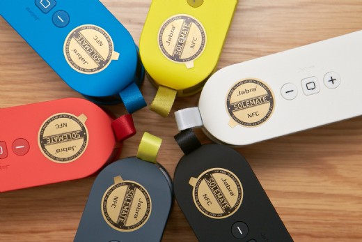 Jabra推出SOLEMATE系列可攜式藍牙喇叭,外觀設計大膽採用繽紛原色,一舉推出正紅、寶藍、耀黑、鮮黃、淨白、銀灰六種顏色,讓行動喇叭「跳」出驚豔本色,輕巧外型,更與年輕族群奔放好動的基因相切合! SOLEMATE全系列皆裝載NFC配對功能,快速連接裝置,播放音樂一秒不漏拍。