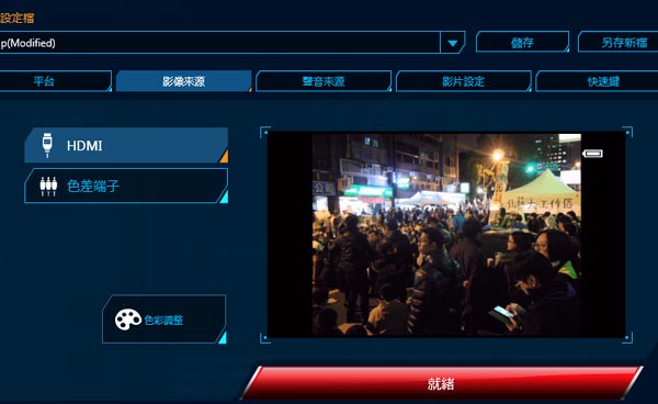 在影像來源畫面中,可預覽輸入的視訊。本文圖中是連接數位相機的 HDMI 端子來擷取數位相機的輸出: