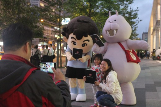 閱讀大使「阿貴」與吉祥物河馬「拉吉」於今日的快閃活動中超人氣現身,宣導全民閱讀,引起廣大迴響,許多民眾紛紛圍觀拍照,表達對閱讀的支持,有位媽媽即表示:「讀書好!每天花五分鐘,這樣的概念很好!」兩位愛書的閱讀大使並仿漫畫情境,以Kuso對話框大談論閱讀樂。即日起至5/2期間,將繼續於台北市各熱門捷運站出口,巡迴快閃數位閱讀運動﹝附件一﹞,希望能以有趣的方式讓民眾重拾對閱讀的興趣。
