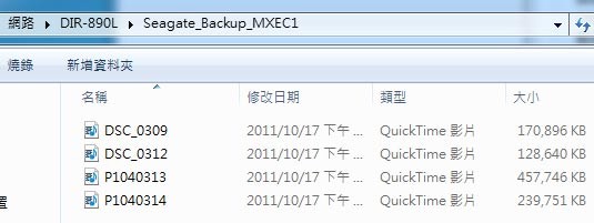 接下來我們讓 B電腦讀取接在 DIR-890L 的外接硬碟檔案,透過 Windows 網路芳鄰便可看到此硬碟內容 (USB 3.0 Seagate 1TB):
