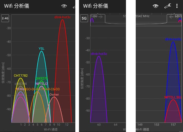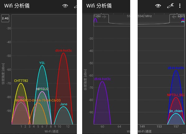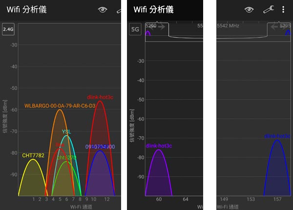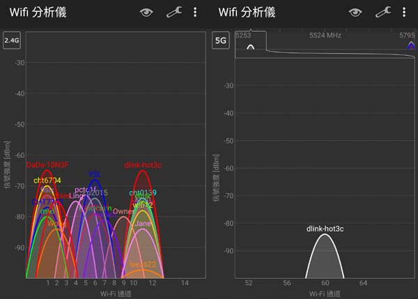 接下來我們使用手機的 WiFi 分析儀 APP,來看看 DIR-890L 的訊號狀況:
