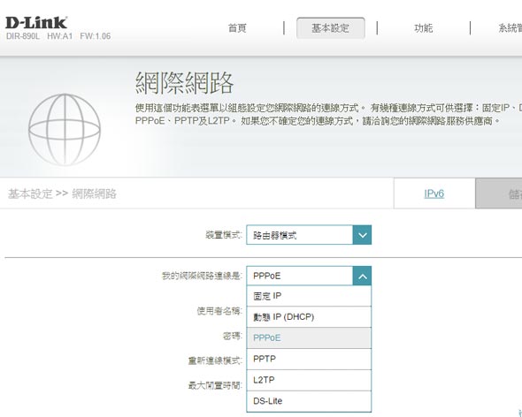 也支援各種上網方式,像是 PPPoE, 固定 IP, 動態 IP等等: