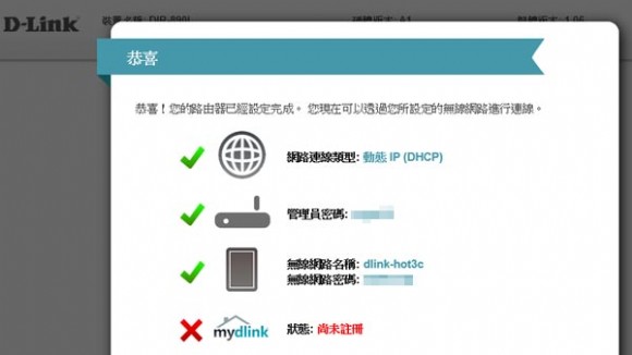 如果有 mydlink 帳戶,也可於此時輸入,用來串連其他 D-Link 周邊產品。