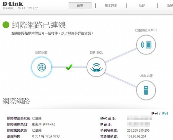 如果在 DIR-890L 有接上 USB隨身碟或行動硬碟,也會出現在上圖的網路拓樸圖中。