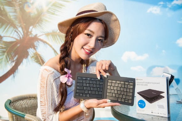為歡慶微軟「萬用折疊式鍵盤」上市,台灣微軟更邀請到氣質女神張鈞甯與大家分享微軟「萬用折疊式鍵盤」使用心得,張鈞甯平時在拍戲的空檔便會使用微軟「萬用折疊式鍵盤」在腳本上編修與註記,也會親自回覆粉絲在臉書的留言。輕薄又有型的微軟「萬用折疊式鍵盤」,隨手一折就可放進隨身小包包裡,再也不需要將就於虛擬鍵盤彈指神功的不便。張鈞甯不但會帶著它跑通告、更常帶著它出遊,她說:「第一次試用微軟『萬用折疊式鍵盤』後,就想立刻入手一台,輕巧又實用!小小一台微軟『萬用折疊式鍵盤』,功能卻很強大,平常除了兩岸三地拍戲會帶著它,隨時在行程空檔中做劇本筆記、收發信件;外出旅遊更會帶著它,不但可以時時刻刻紀錄所看所聞,還可讓我即時在臉書粉絲頁上跟粉絲分享近況和互動。即便是使用不同平台的裝置也都可相容,真是太貼心方便了!」