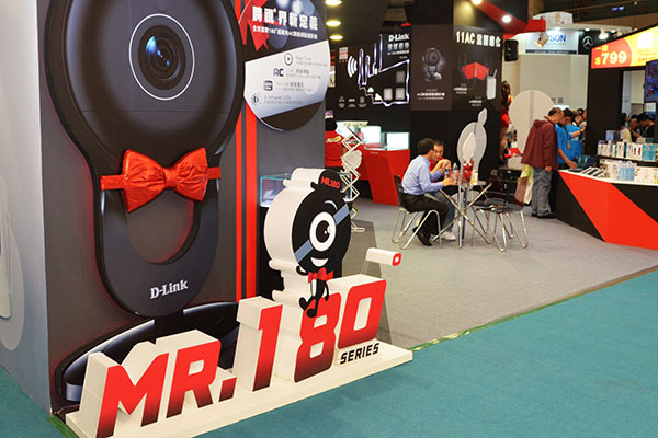 先前我們介紹過這次資訊月展場相當獨特的隱形轟炸機路由器造型佈置的 D-Link 友訊科技,本次展出的主題產品除了 AC5300 高速路由器 DIR-895L 外,另一系列的主題就是全球首款 180°超廣角高畫質AC無線網路攝影機:Mr.180°系列的 DCS-960L 及 DCS-2630L。