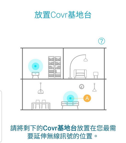 延續上面測試,Point A 主機位置不變,但我們在另一端加上副機基地台,看看是否能讓訊號傳輸恢復高速水準。將副機放在間隔兩道牆,距離約 15m的其他房間,匹配成功後(covr LOGO 亮白色),靠近副機時,可看到訊號又恢復極佳水準:
