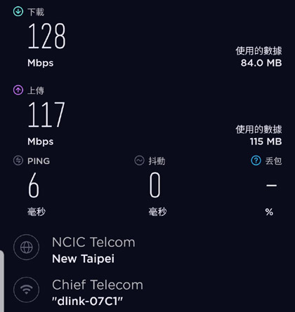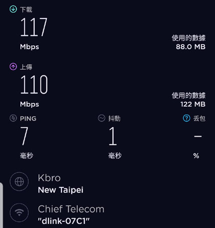 對外下載/上傳速率仍有 117/110Mbps 高速水準:
