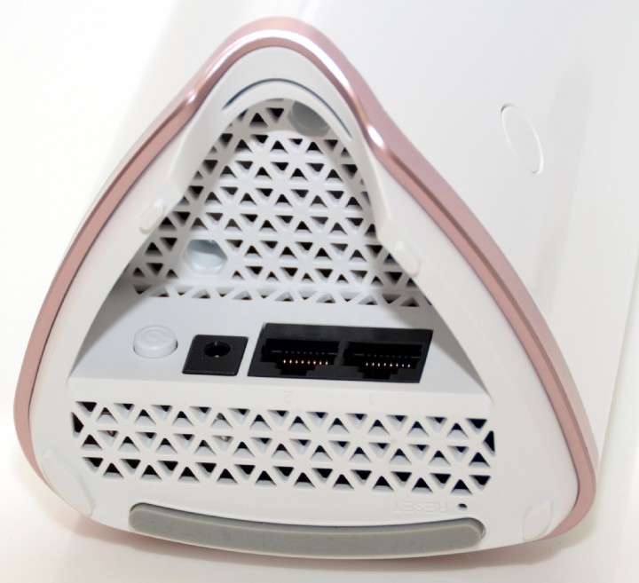 另外 COVR-2202 每台主機還提供了兩個 Gigabite 乙太網路插孔,可自動判斷連接了 WAN 網際網路或是 LAN 區域網路,因此仍可支援 NAS 設備或桌機、遊戲主機等有線裝置。在機身底部貼紙也印上了預設的主機基地台 SSID 與密碼,讓用戶 RESET 重新設定後不用再翻箱找櫃找說明手冊查詢。