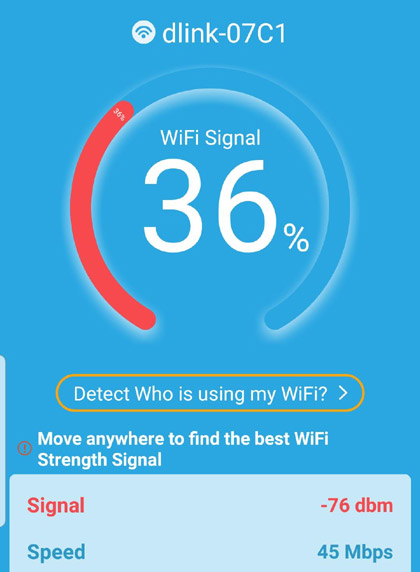 在房屋鐵門外(非直線距離),訊號強度降至 -76dbm,連線速率剩 45Mbps: