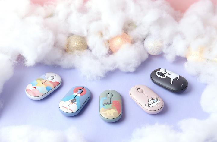 Logitech X毛毛蟲文創「白日,夢工廠」Pebble M350插畫家設計上蓋,一次祭出四位台灣在地插畫家,包含Q萌系療癒插畫家「熊秋葵」、最懂上班族生活辛酸苦辣的「老闆這魚」、溫暖帶有孩子氣的「小黃間」,還有用畫畫點亮好事繁星的「天天好事」,強強聯手打造各式插畫風格,陪伴每段居家時光。上蓋底色除了選用「石墨灰」、「珍珠白、「玫瑰粉」3種經典色系,今年更首度納入粉絲敲碗已久的「天空藍」與「薄荷綠」,共5種底色。