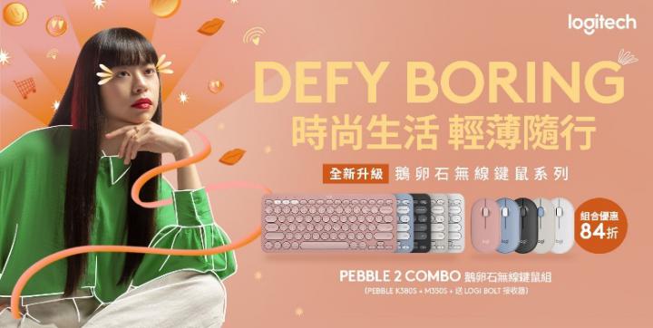 Logitech 全新升級熱銷商品 Pebble 2.0 鵝卵石無線鍵鼠系列,美型設計兼具智能啟動升級登場。Pebble 2 Combo 鵝卵石無線鍵鼠組由 Pebble K380S 跨平台藍牙鍵盤及 Pebble M350S 鵝卵石無線滑鼠組成,主打「玫瑰粉」、「珍珠白」及「石墨灰」三色,並推出「迷霧灰」、「午夜藍」兩款季節限定色,讓使用者展現自我風格。全新鵝卵石無線鍵鼠系列外型纖薄輕巧,是行動辦公族與學生的最佳選擇;使用環保設計與永續包材,減少地球破壞。此外,全系列支援 Easy-Switch 最多可輕鬆連結三台裝置,也可利用 Logi Options+ 的 Smart Actions 智能啟動設定快捷鍵,一鍵完成複雜任務,定義自我辦公學習空間。而商務與學習皆不可或缺的視訊神器 Brio 100 網路攝影機,也以繽紛色彩新上市,3 色圓角美型設計、Full HD 1080P 高畫質解析度與可遮蔽鏡頭,滿足多種視訊情境。即日起購買 Pebble 2 Combo優惠84折 1,790 元,Brio 100 網路攝影機售價 1,290 元。