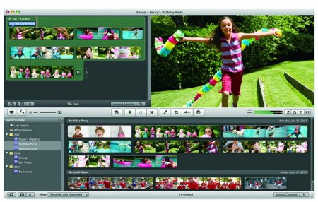 iMovie ’08是蘋果完全重新開發的電影製作軟體,讓使用者重新探索並享受自己的影片庫,只要幾分鐘,而不是幾小時,就能製作一部電影,而且彈指之間就能與親朋好友或整個世界一起分享。iMovie ’08可以從最新的AVCHD、HDV、DV攝錄影機或是一般數位相機匯入影片,並且顯示使用者整個影片庫,不論是儲存在內部或外部硬碟。使用者只要將滑鼠移到某個影片上,就能以任何速度向前或向後預覽該影片,甚至超過即時速度。使用者選取影片就像選取文字一樣簡單,只要將選好的影片拖進某個專案當中,然後再從iTunes®加入音樂,接著加上配音以及優美的特效與劇院標題,就能輕鬆製作出一部電影。iMovie ’08讓您只要按幾下滑鼠就能在iPod®、iPhone™或Apple TV®上觀賞您的電影,甚至透過YouTube與全世界分享。