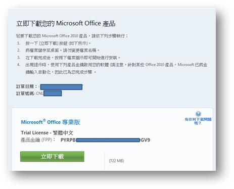 5. 系統將會產生試用的產品金鑰,以及下載試用版的連結