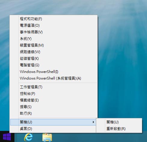 最令人興奮的就是左下角的開始按鍵回來了。不過如果按滑鼠右鍵的話,仍會回到動態磚 UI,必須按左鍵才會出現選單: