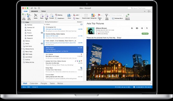 Outlook for Mac ─ 管理電子郵件、行事曆、聯絡人和工作任務從來就不輕鬆。最新的Outlook for Mac 支援推播郵件 (push mail) 功能,讓使用者的收件匣永遠處在最新狀態。改良後的「對話檢視模式」 (conversation view) 可依「群組對話」自動整理收件匣,讓使用者無需自行尋覓相關訊息。新的「訊息預覽」會在主旨欄的下方顯示郵件的第一句話,方便使用者迅速決定是否馬上檢視或稍後再讀。