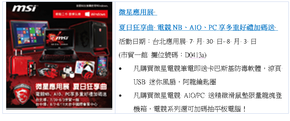 • Windows 10 應用展接駁車服務時間:8/1 (六)、8/2 (日) 10:00-17:00
