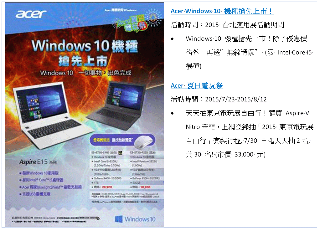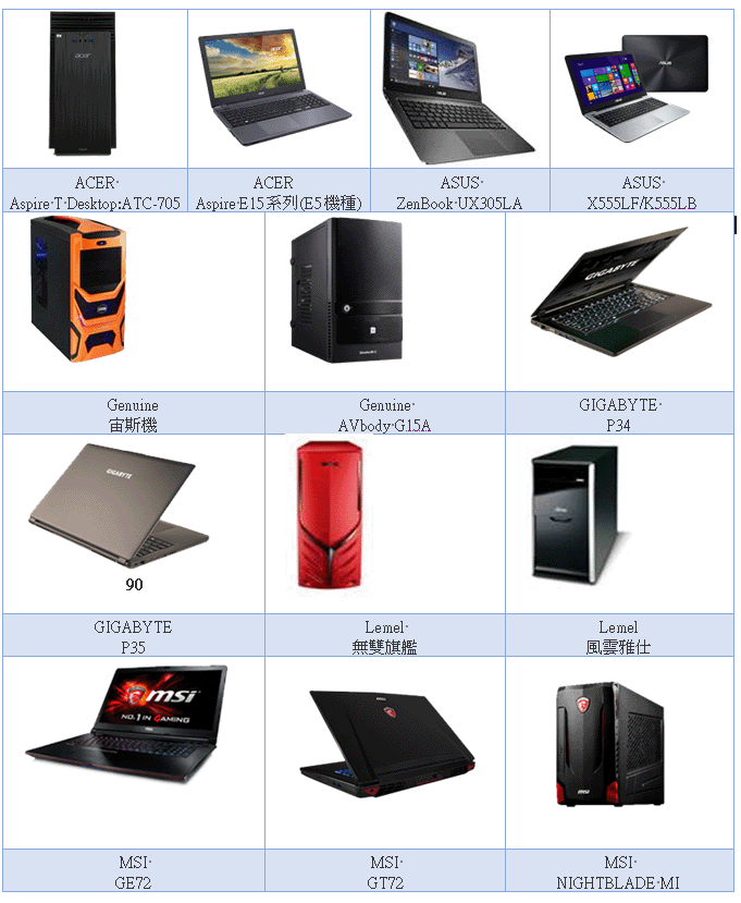 宏碁、華碩、捷元、技嘉、聯強及微星等品牌紛紛推出首波搭載Windows 10的新機如下: