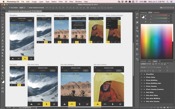 • Photoshop CC 今年慶祝25週年,推出畫板(Artboards),以最佳方式在單一Photoshop文件內設計跨裝置的使用者體驗,並迅速在裝置上預覽;另外預先推出Photoshop Design Space,這項最新工作環境著重於行動應用程式與網站設計師的需求。