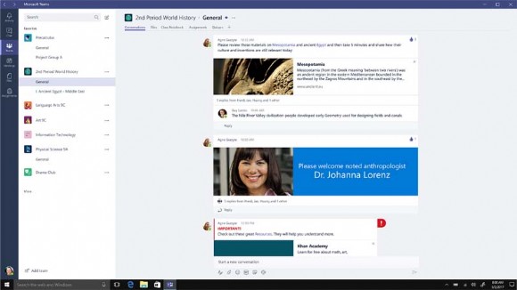微軟Word、Excel及線上PowePoint讓學生們能夠即時共同編輯文件。隨著今(2017) 年即將推出的「微軟教育商店」(Microsoft Store for Education),全新的Microsoft Teams課堂學習體驗將會把共同協作帶向一個全新的境界。Microsoft Teams 是數位教學的中心,能讓師生在數位空間中齊聚一堂、共同協作與學習。搭配OneNote Class Notebook 以及新的家庭作業與測驗輔助工具使用,老師能夠迅速地派送教材、評分、設計個人化的教材、以及輕鬆地與學生、家長和其他教育夥伴溝通,從而多出更多時間來與學生互動。