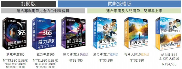 ‧ 威力導演 17 & 相片大師 10:NT$ 4,500