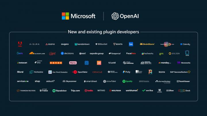 微軟宣布將與 OpenAI 的 ChatGPT 採取相同的擴充套件標準,使 ChatGPT 與 Microsoft Copilot 所提供的服務具備互通性。開發者可以透過平台,建立擴充套件銜接客戶與業務端,可銜接擴充套件包含 ChatGPT、Bing、Dynamics 365 Copilot 與 Microsoft 365 Copilot。