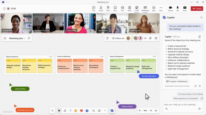 ‧ AI 深入生產力工具,全面激發創造力:在 Microsoft 365 應用程式中 Word、Excel、PowerPoint、Outlook、Teams 等生產力工具,使用者可以使用自然語言,要求 Copilot 生成、歸納想法、總結內容並產出設計;此外,我們也持續為 Copilot 新增功能,如白板中的 Copilot,可幫助你在 Microsoft Teams 會議以及進行腦力激盪時更加創意高效,透過全新的白板與筆記功能,能夠自動擷取並視覺化線上會議的對話摘要,並讓與會者共同編輯;用戶也能夠藉由 Microsoft Loop 建立團隊與 Copilot 共同協作的空間,提供員工更智慧的商務功能,達到創造力與生產力的雙面加乘。