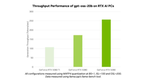 隨著「gpt-oss-20b」與「gpt-oss-120b」的推出,OpenAI將前沿的AI模型技術開放給全球數百萬用戶,讓AI開發者與愛好者可透過NVIDIA RTX AI PC及工作站體驗優化後的AI模型。使用者可透過Ollama、llama.cpp與Microsoft AI Foundry Local等熱門工具及框架,輕鬆於配備NVIDIA GeForce RTX 5090 GPU的設備上,達到每秒高達256個tokens的運算效能。