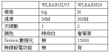 兩款無線寬頻分享器有何差異呢?GLV3及N20兩台體積都相當於兩張名片大小,也都支援1個網際網路埠與4個區域網路埠(皆為10/100BASE-T),不同點在於:時尚白色的GLV3符合g/b規格,最高無線傳輸可達54M,而奢華有霧面質感的黑色N20,則是該系列中首款符合802.11n規格的機種,速度最高可達300M;值得一提的是,進階款的N20還另外支援高達15,000個Session數,網路流量的處理能力是一般機種的5倍,穩定性相對較高,且具備先進的無線節電技術,能減少無線傳輸時的電力消耗,達到節能減碳的目的。