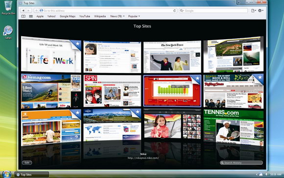 • Top Sites:讓使用者在單一頁面上預覽經常瀏覽的網頁,使用者只需一個按鍵就能直接跳到最愛的網站。