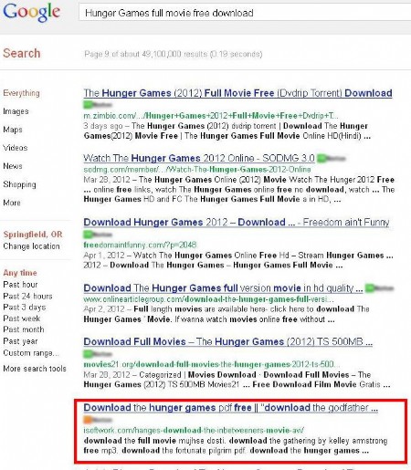 由美國暢銷小說所改編電影The Hunger Games《飢餓遊戲》已連續兩週稱霸北美及台北週末票房冠軍,故事當中充滿反烏托邦世界懸疑、驚悚的畫面吸引了全球數百萬影迷。當然,網路駭客必然不會放過其中的龐大商機,利用大眾對電影的好奇心會透過網路搜尋相關資訊和獨家電影片段的行為,在相關的關鍵字結果中置入惡意連結讓消費者誤入。