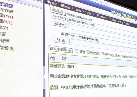 在今天舉行的「中文化電子郵件地址」技術發表會中,TWNIC以中文化電子郵件地址<曾憲雄@台網中心.台灣 >與網擎資訊軟體股份有限公司、網路中文等單位進行郵件寄收的互通測試,成功寫下我國網際網路發展的重要里程碑。