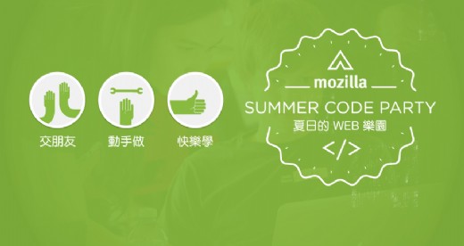 首次由Mozilla Taiwan、海洋大學網路發展協會、MozTW 社群共同籌辦的「夏日的Web樂園」即將在7月29日下午2點,於華山1914文創園區中3拱廳熱鬧登場,活動精神將呼應Mozilla Webmaker 計劃中的Summer Code Party,以園遊會的形式呈現各種參與網路的方式,讓參與者輕鬆學習如何在網路上留下足跡。