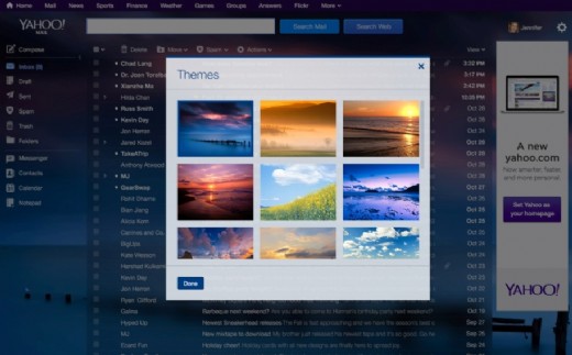 提供網友驚喜的使用體驗,是Yahoo努力追求的目標,在此次的Yahoo電子信箱改版中,為讓收件匣更令人驚艷,也讓使用者可自由妝點個人化的信箱,全新Yahoo電子信箱提供眾多豐富的主題背景,其中包括從Flickr上所精心挑選的美麗照片,讓使用者選擇最喜歡、最適合自己的主題背景,並可立即套用在包括PC、平版電腦、智慧型手機等所有裝置上。