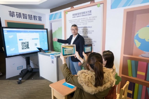 華碩智慧教室解決方案:透過雲端科技整合ASUS Monkeys學習管理平台與華碩最新觸控螢幕、教育平板、無線連結器與無線分享器等多款教學設備,滿足師生互動教學,翻轉傳統教學的主客關係、激發學生的學習興趣與效能,並充分運用雲端技術來保存與分析個人學習歷程,落實適性教育與因材施教。