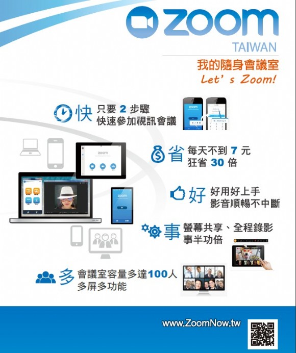 低廉的價格、簡單好用但專業的功能(不用任何專業人員的安裝與設定)以及順暢的視訊通訊品質(台灣與主要進出口市場間的業務通訊),這是Zoom對台灣中小企業的價值!
